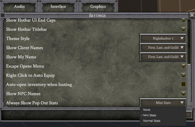 Individual window scaling - Most windows have the option to scale them up or down to customize their size individually along size the UI scale (see UI section above)